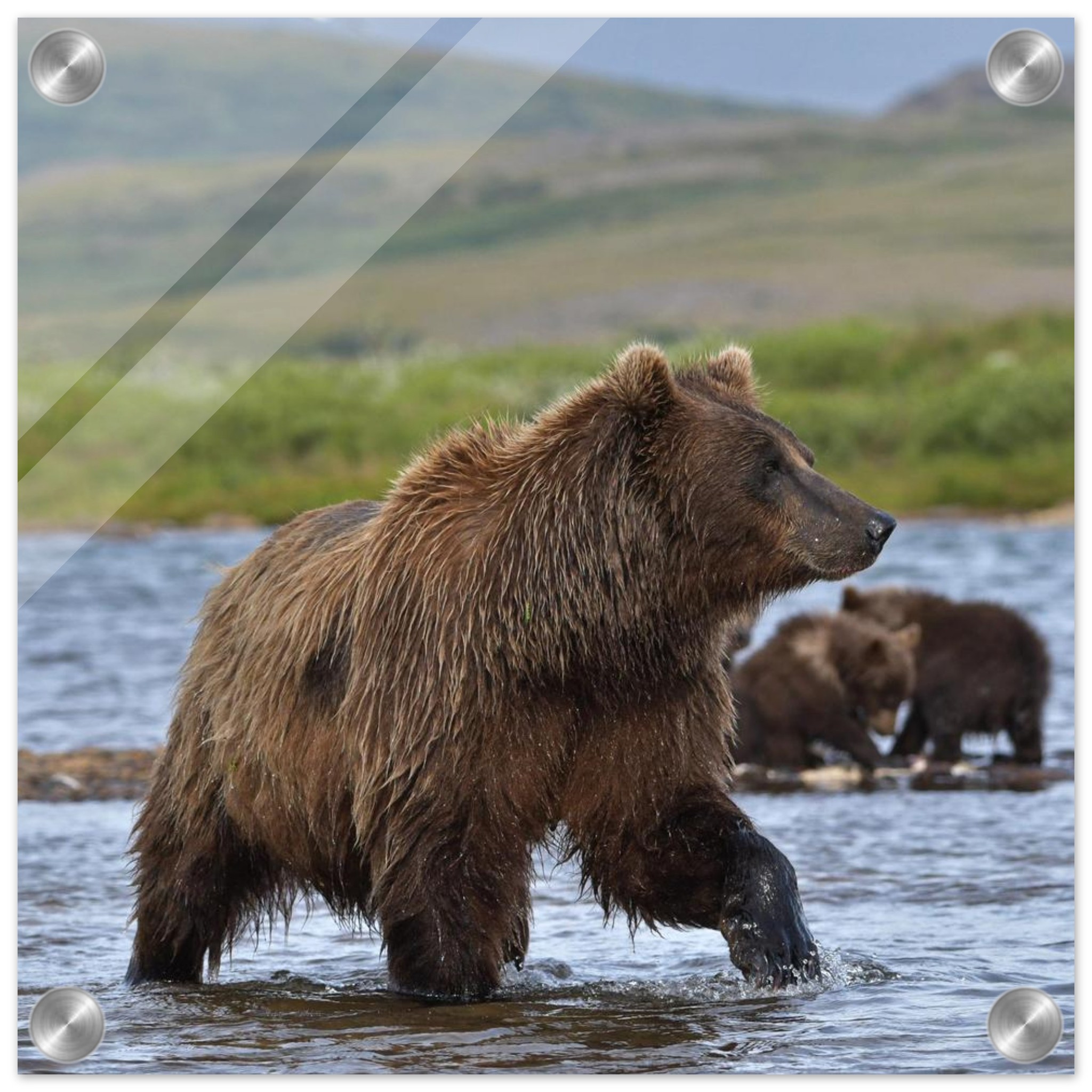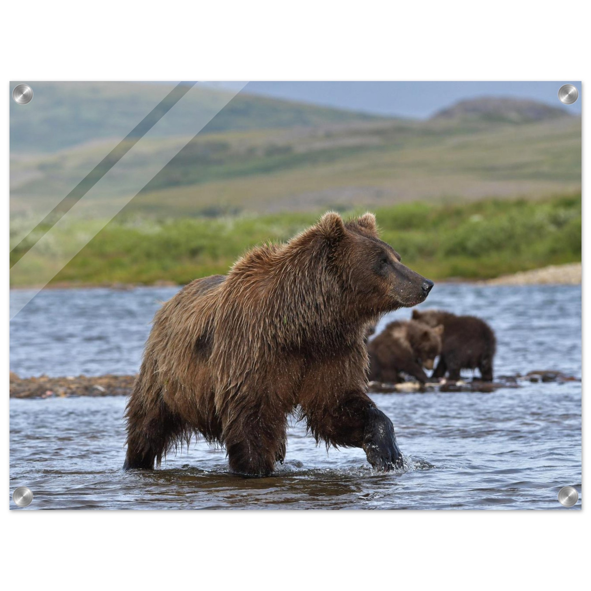 Mother grizzly bear is fishing for sockeye salmon in Katmai’s wilderness, Alaska