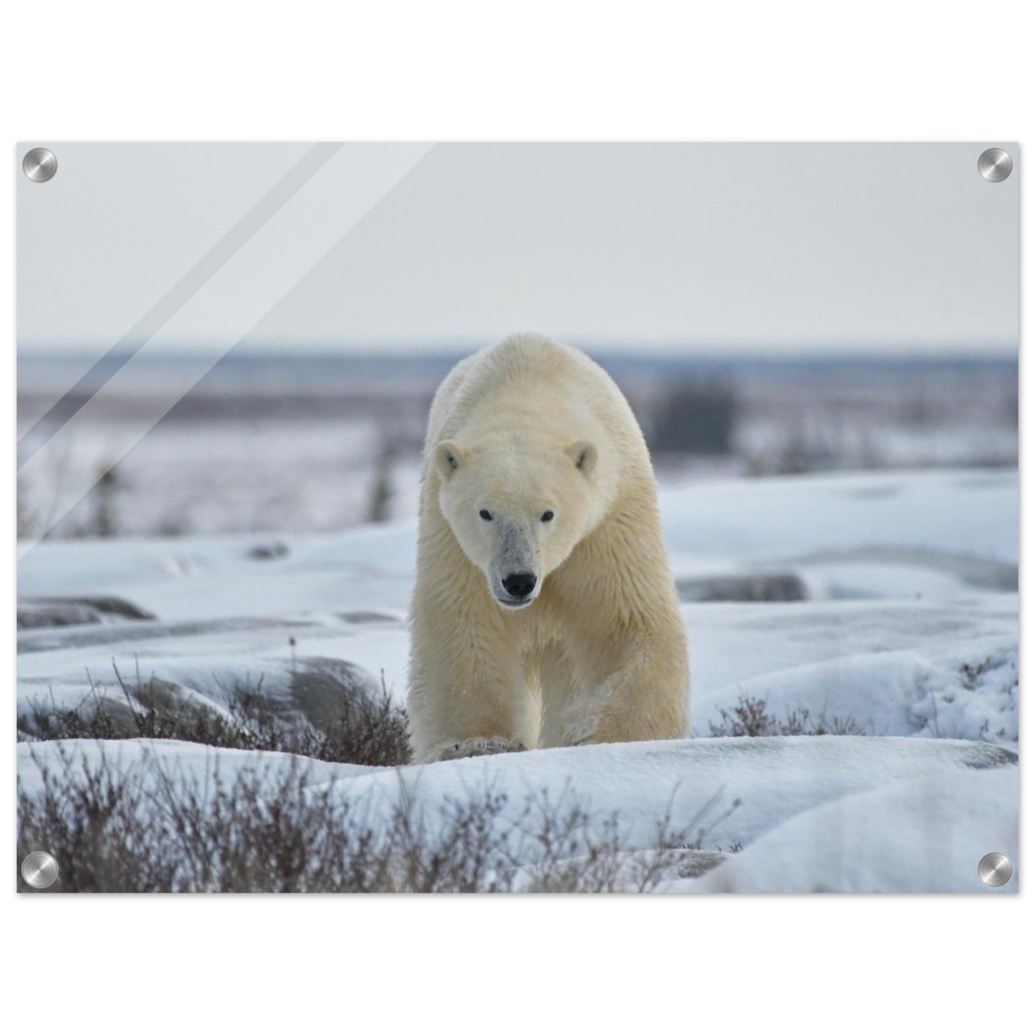 A polar bear is exploring the Taiga around Churchill, Manitoba – waiting for the Hudson Bay to freeze to go out on the ice to hunt for seals